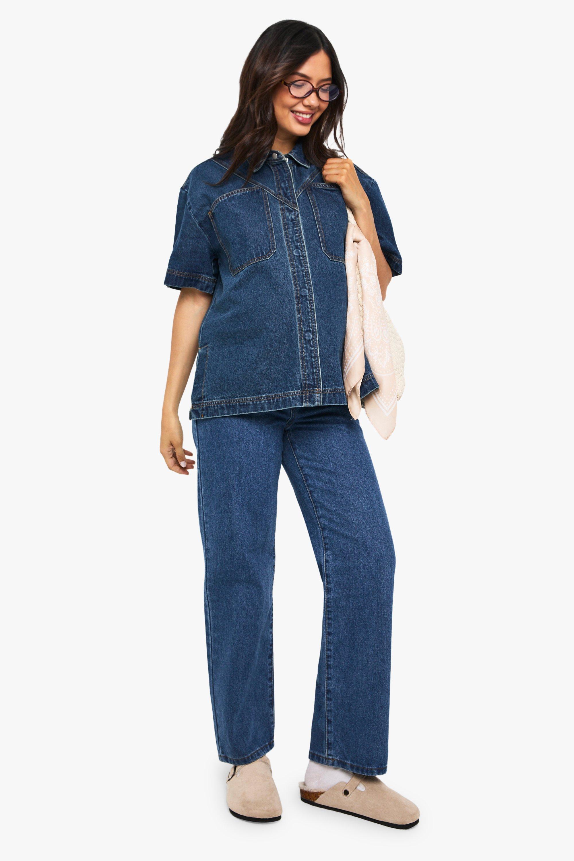 Boohoo Zwangerschap Over The Bump Boyfriend Jeans, Light Blu...