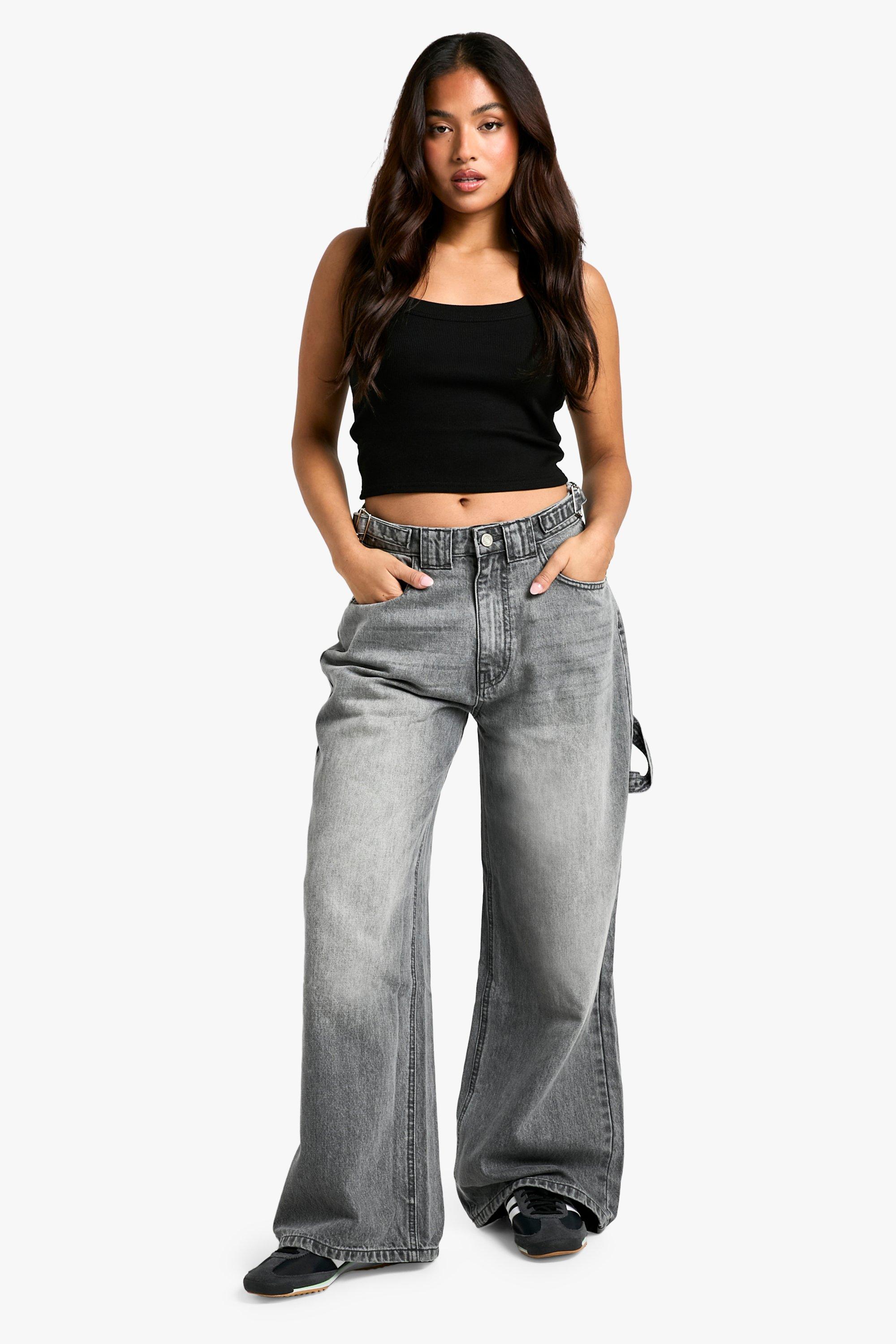 Boohoo Pettie Gebleekte Wide Leg Cargo Jeans, Mid Grey